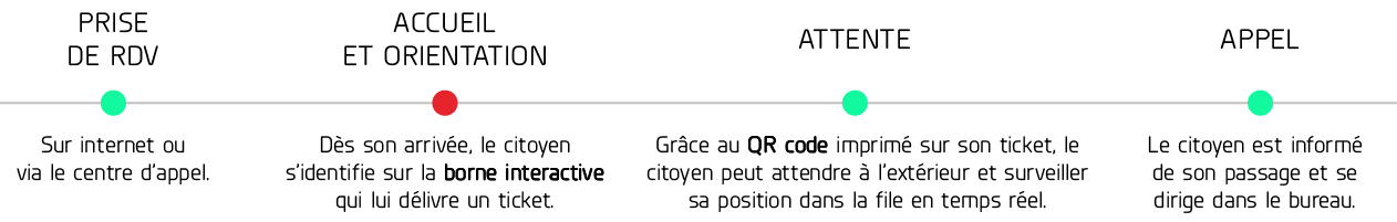 De plus, dès leur arrivée vos usagers s’identifient sur la borne, qui leur délivre un ticket avec un QR-code personnalisé. Le visiteur peut alors patienter à l'extérieur de la salle d'attente et visualiser sa position dans la file en temps réel. Les salles d'attente sont désengorgées et les distanciations sociales sont respectées.